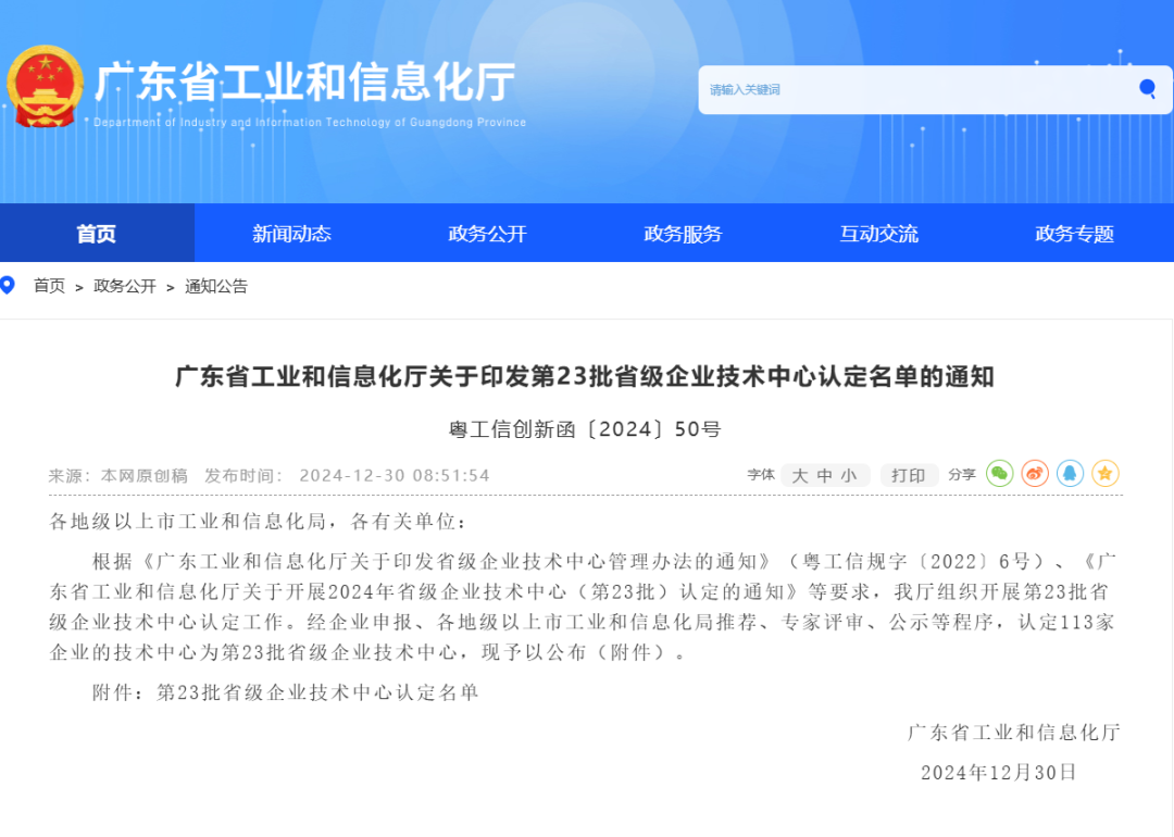 12月30日,广东省工业和信息化厅印发《第23批省级企业技术中心认定名单》,广州PA真人视讯新材料科技股份有限公司(以下简称“PA真人视讯”)荣耀登榜。广东省长期以来持续倡导并支持企业设立技术中心,对于具备强大创新能力、良好创新机制、显著引领示范作用且符合标准的企业技术中心给予认定。