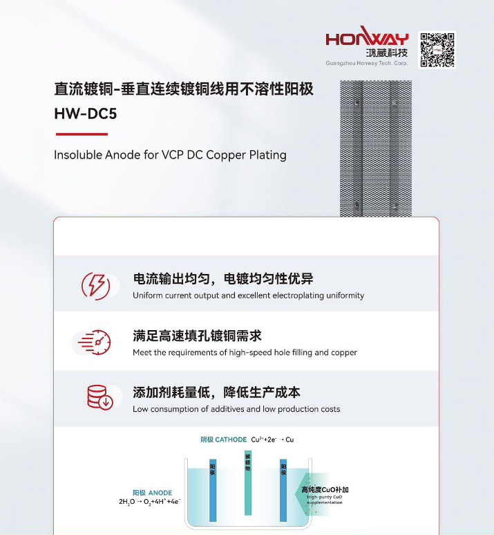 广州鸿葳科技有限公司(Guangzhou HonwayTechnology)创建于2010年,聚焦应用电化学技术领域,主要从事不溶性阳极、电子化学品、表面处理化学品及相关设备的研发、生产与销售。2025年,在通用电镀阳极的基础上,深化高端PCB制造领域相关阳极产品升级,拓展阳极市场,竭诚为客户给予强力技术支持及质量保障。