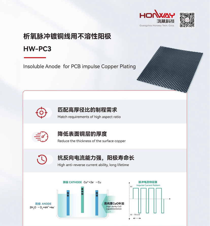 广州鸿葳科技有限公司(以下统称“鸿葳科技”),主要从事不溶性阳极材料、电子化学品、表面处理化学品及相关设备研发生产。在阳极领域拥有深厚的技术积累和成熟的产业经验。公司持续有助于产品创新与升级,特别是在高端PCB制造领域,依托扎实的技术平台和完善的生产体系,为客户给予高性能、高可靠性的阳极解决方案与质量保障。