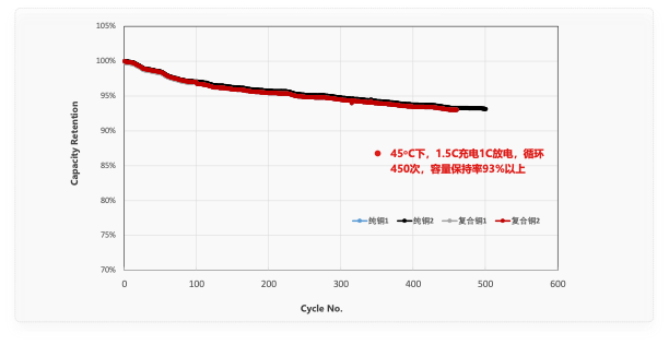 对比普通的pp复合铜箔,可显著提高铜层与pp膜的结合力、提高能量密度、延迟电池使用寿命。